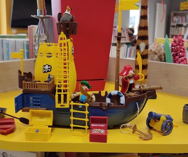 Bycie piratem to zawsze ogromna frajda dla dzieciaków!!! Nie inaczej było i tym razem podczas bibliotecznych zajęć dla najmłodszych. Na początku...